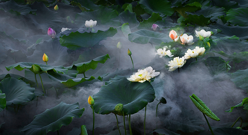 【觅人】@金花婆婆  月下,荷上,清波带香